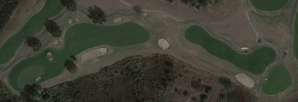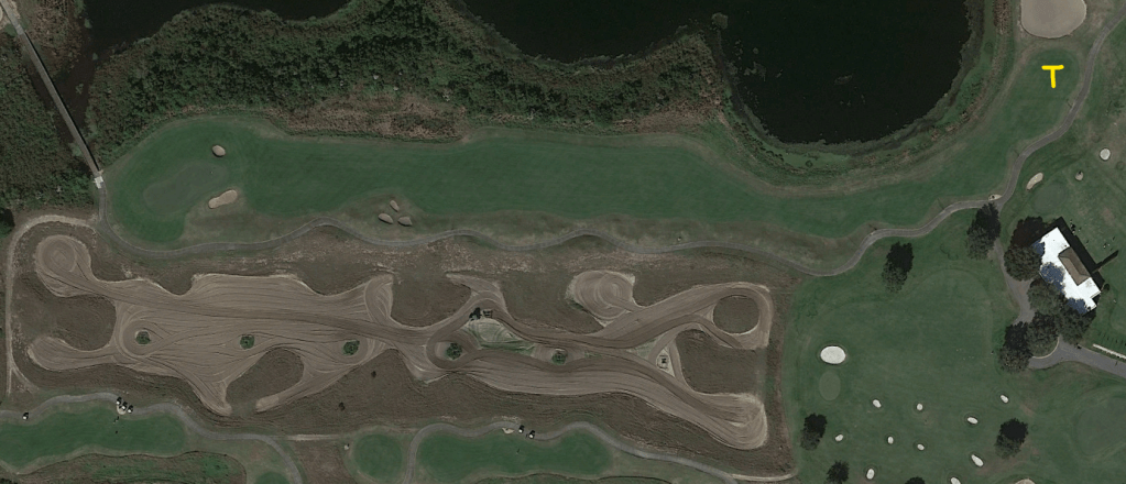 But this ninth hole’s bunkering style is a sudden departure from that, looking like a Myrtle Beach World Tour Course (Pete Dye edition), as Norman abruptly switches bunkering style for a style more reminiscent Pete Dye’s earlier work.