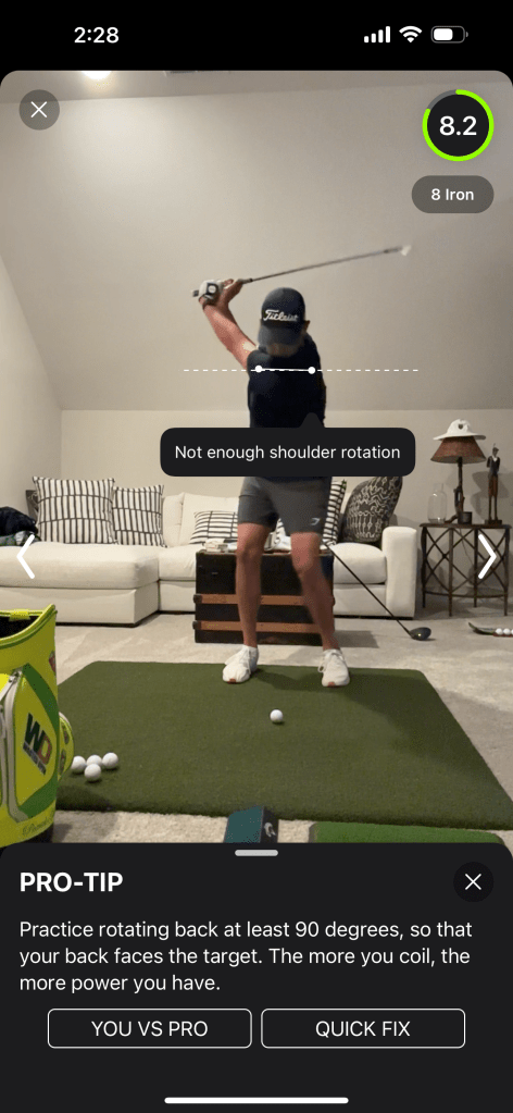 I thought the shoulder rotation not being read correctly could have been from me wearing dark clothing, but when I changed shirts, it did not seem to help. I understand these things happen, and it can’t always read things incorrectly, but for less experienced players, these incorrect readings could cause them to chase issues that do not actually exist. Sparrow Golf has an easy-to-follow and great looking feedback system, but for an app with a paid subscription, I expected the accuracy of the feedback to be more consistent.