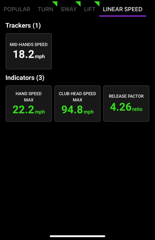 Sportsbox AI Golf also offers the ability to help you find your most efficient swing, which is essentially speed training. This mode will let you record three driver swings at a time and give you feedback on your current club head speed and what it believes is your maximum club head speed potential. This is one of the newest features added to SportsBox AI Golf, and, unfortunately for me, I could not get an accurate reading on my speed. My swing speed with driver varies between 111 and 115. Other users may have better luck. I will certainly revisit this feature when I review Sportsbox AI with the Foresight Launch Monitor pairing.