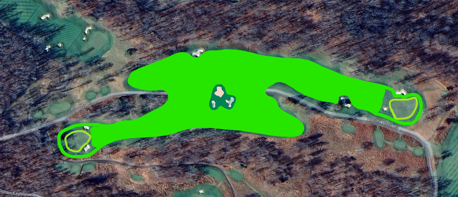 This landing area at the top of the hill is only 40-yards wide, which is honestly pretty bad design for a 480-yard par-4. Laying up, oddly enough, simply not an option. The slope of the first half of the hole makes that impossible. Even when the landing area is found, a 180-200 yard approach downhill awaits (admittedly, to a giant green, but still). I think this hole is asking WAY too much from the tee shot, especially this late in the round. If it was asking that of a long iron, I’d be okay with it, but a driver into a 40-yard-wide corridor is always too narrow (industry standard is more like 65 yards of width from the tee where driver is expected), especially on this long of a par-4. It is a bit of a sour ending to an otherwise fantastic golf course, because with that narrow of a landing area, statistically, there are a large percentage of golf rounds ending with a lost ball from the eighteenth tee.